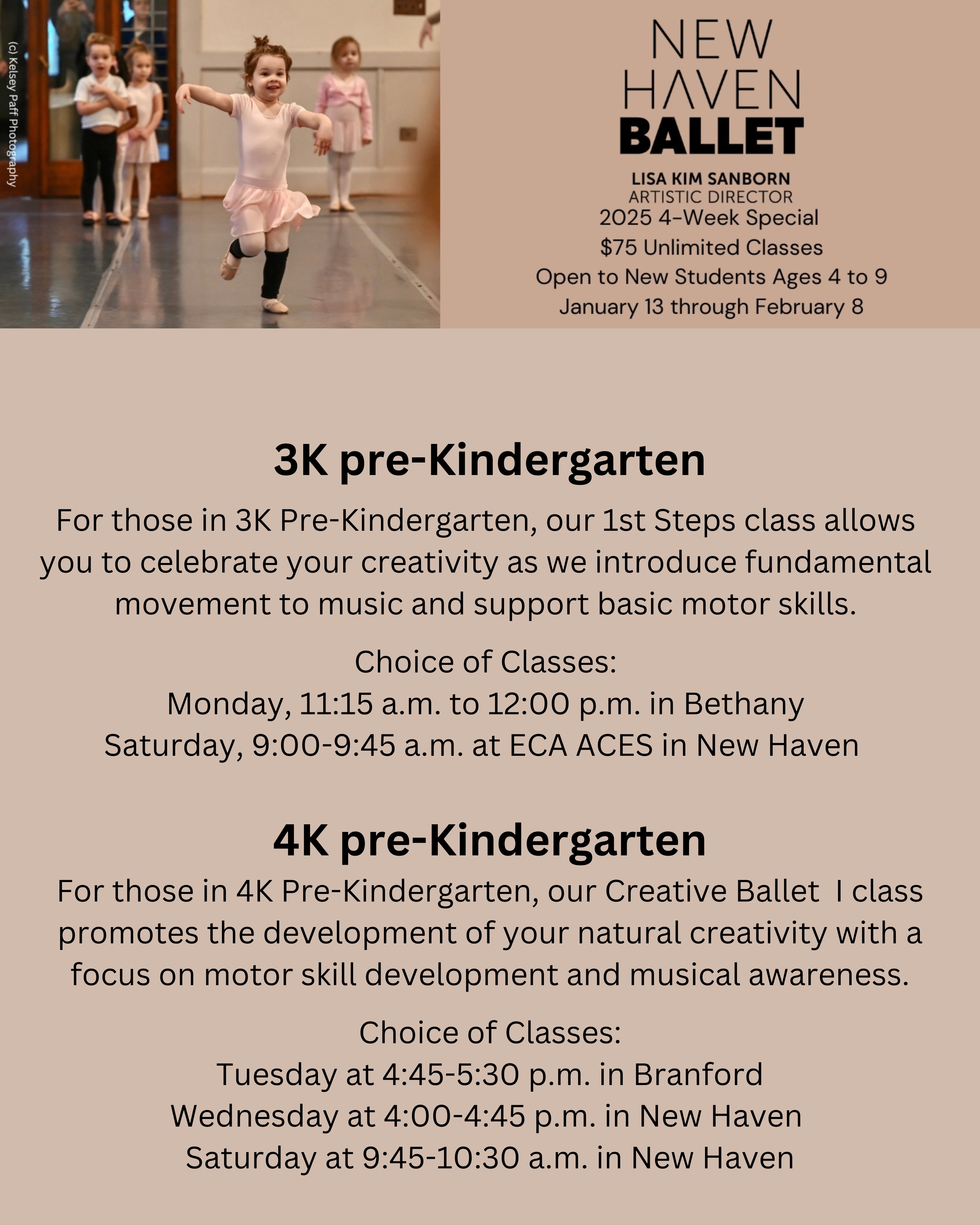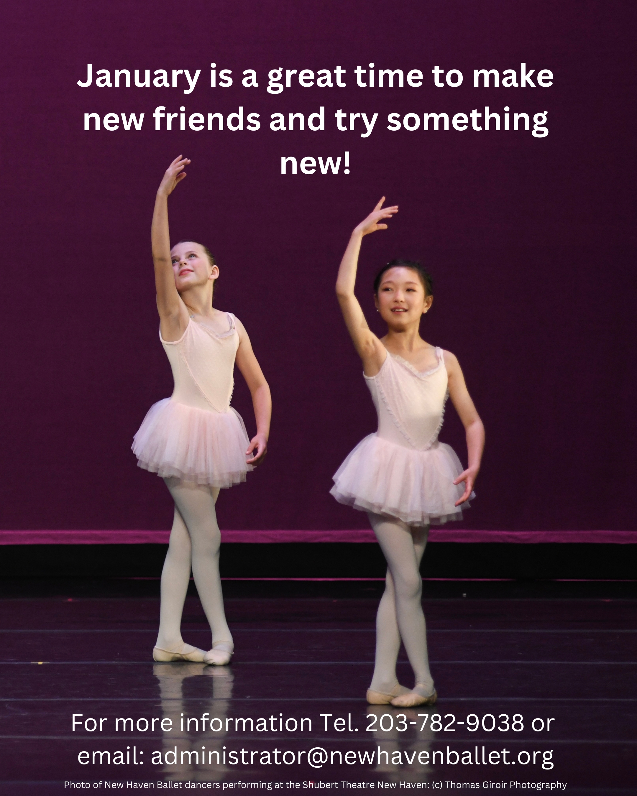 REGISTER NOW FOR OUR JANUARY 2025 SPECIAL The New Year is a perfect time to try something new! From January 13 - February 8, 2025, new students ages 4-9 years may take weekly Intro to Ballet Classes for only $75. Spread the love! Forward this email to a friend so their children can take advantage of this great offer! |
